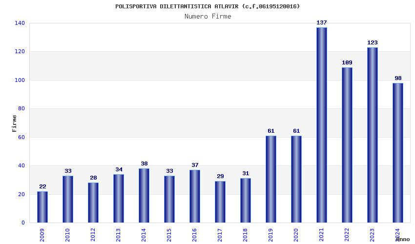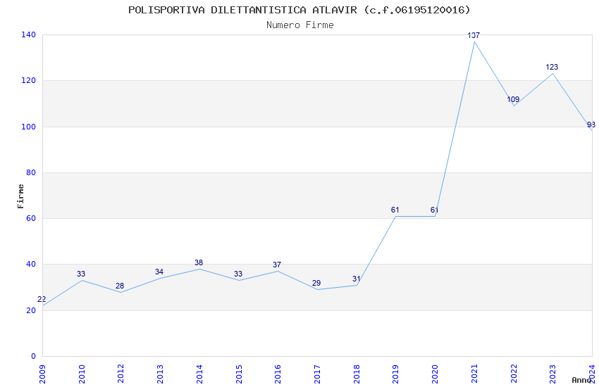 | 2021 | 137 | 4.676,19 | 34,13 | 11.704 | 812 | 450 | 4 |