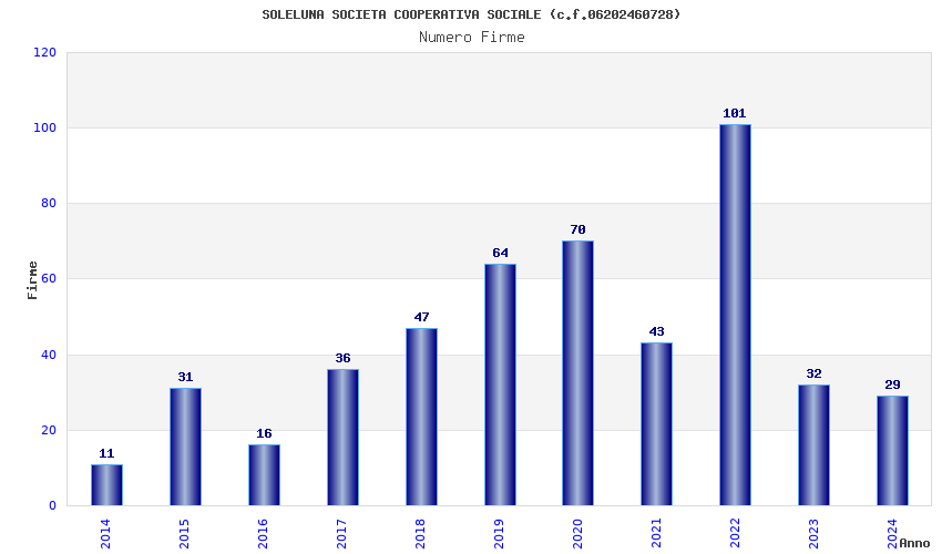 | 2022 | 101 | 2.319,22 | 22,96 | 20.682 | 1.072 | 363 | 5 |