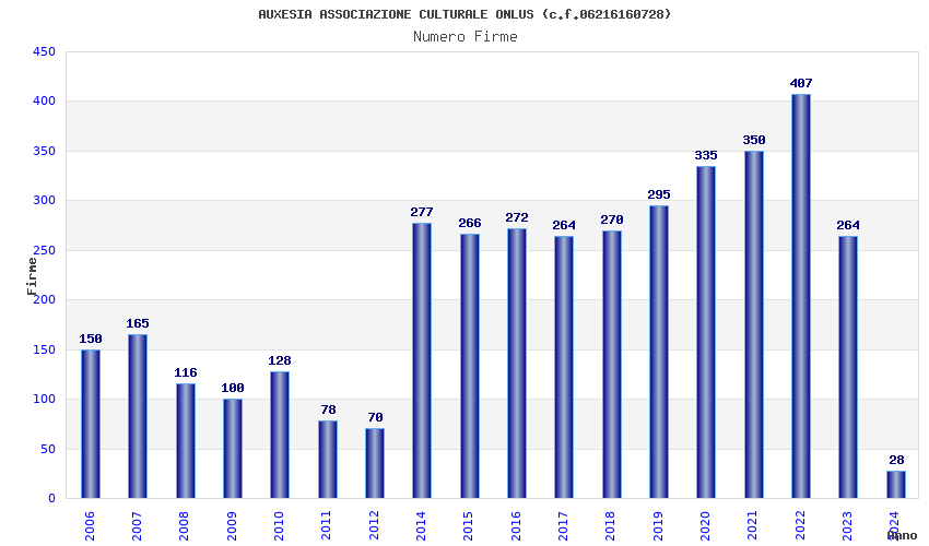 | Anno | Firme | Importi | Media | Naz. | Reg. | Prov. | Comu. |