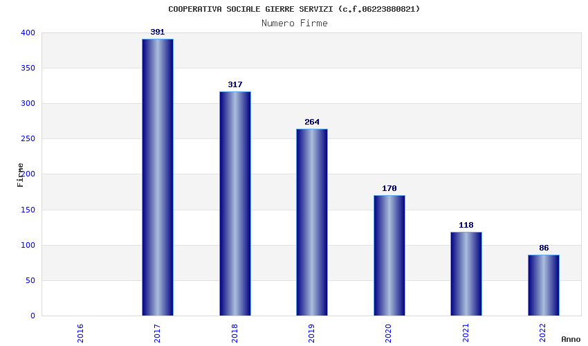 | Anno | Firme | Importi | Media | Naz. | Reg. | Prov. | Comu. |