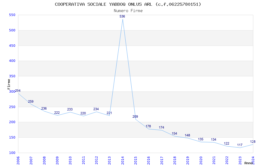 | 2021 | 134 | 5.531,11 | 41,28 | 9.836 | 2.302 | 975 | 12 |