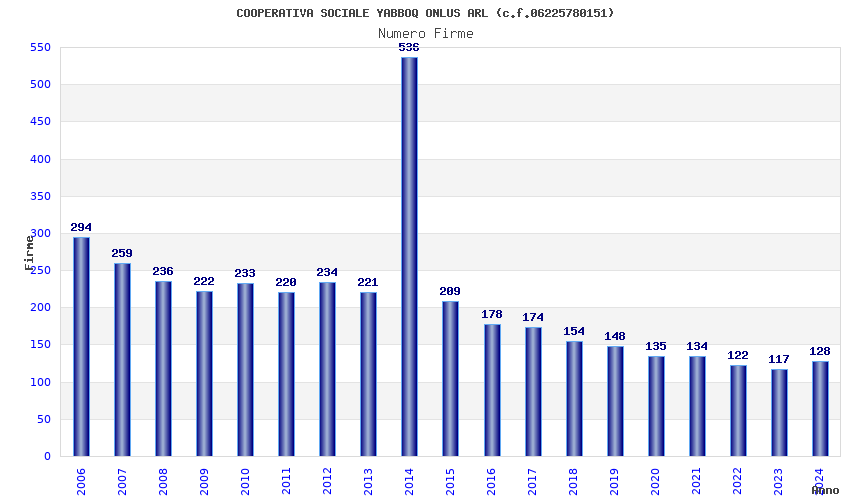 | Anno | Firme | Importi | Media | Naz. | Reg. | Prov. | Comu. |