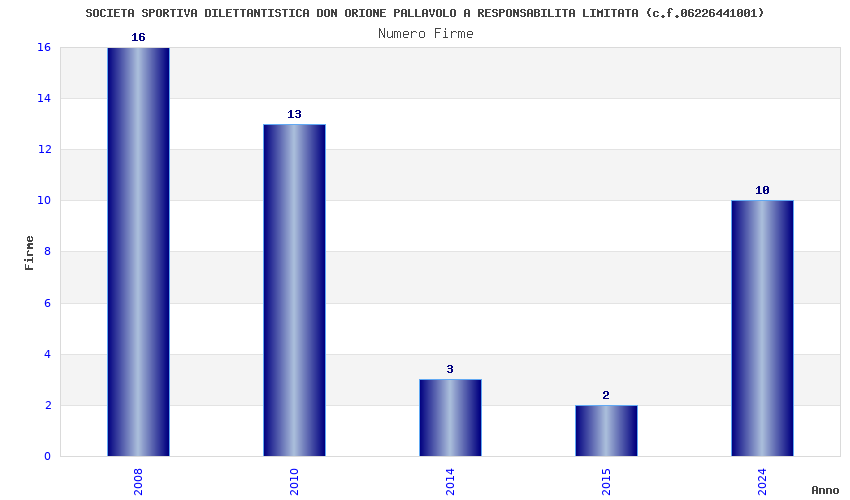 | Anno | Firme | Importi | Media | Naz. | Reg. | Prov. | Comu. |