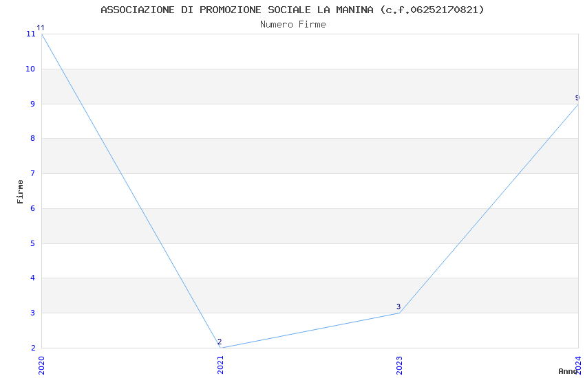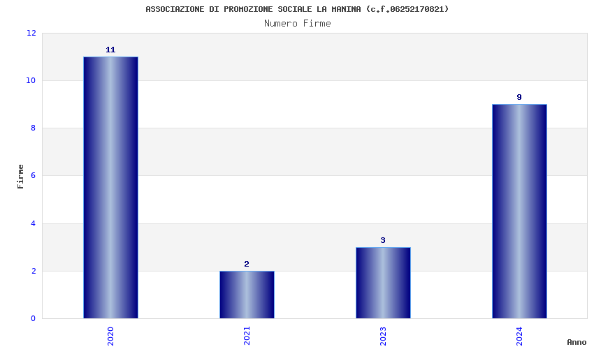 | Anno | Firme | Importi | Media | Naz. | Reg. | Prov. | Comu. |