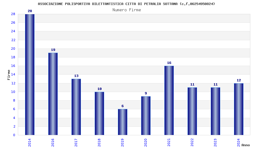 | Anno | Firme | Importi | Media | Naz. | Reg. | Prov. | Comu. |