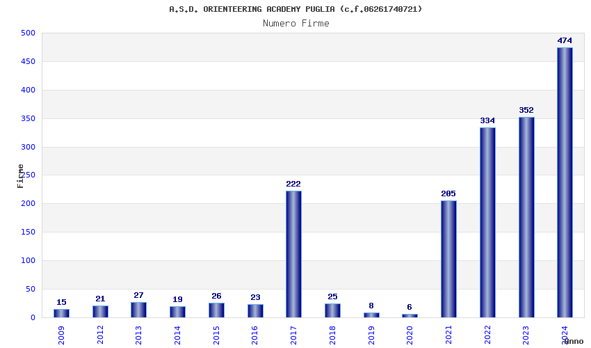 | Anno | Firme | Importi | Media | Naz. | Reg. | Prov. | Comu. |