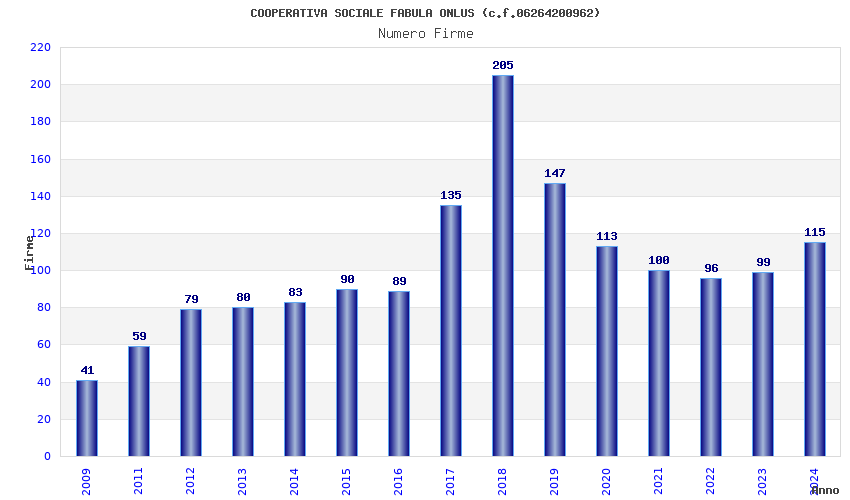 | Anno | Firme | Importi | Media | Naz. | Reg. | Prov. | Comu. |