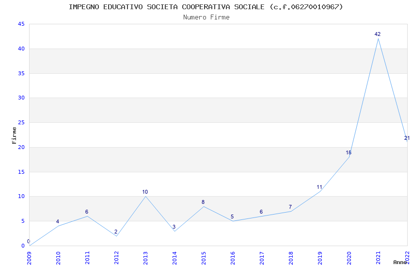 | 2021 | 42 | 2.630,56 | 62,63 | 19.573 | 4.377 | 1.593 | 1.007 |