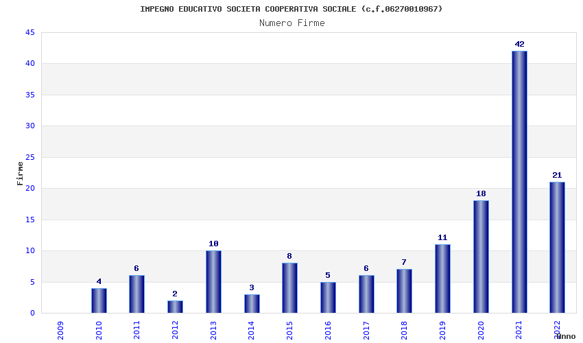 | Anno | Firme | Importi | Media | Naz. | Reg. | Prov. | Comu. |