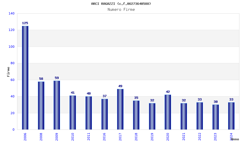 | Anno | Firme | Importi | Media | Naz. | Reg. | Prov. | Comu. |