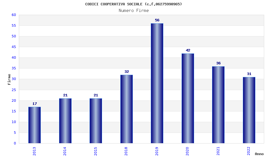| Anno | Firme | Importi | Media | Naz. | Reg. | Prov. | Comu. |