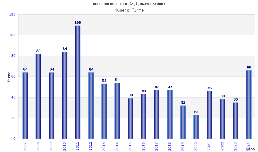 | Anno | Firme | Importi | Media | Naz. | Reg. | Prov. | Comu. |