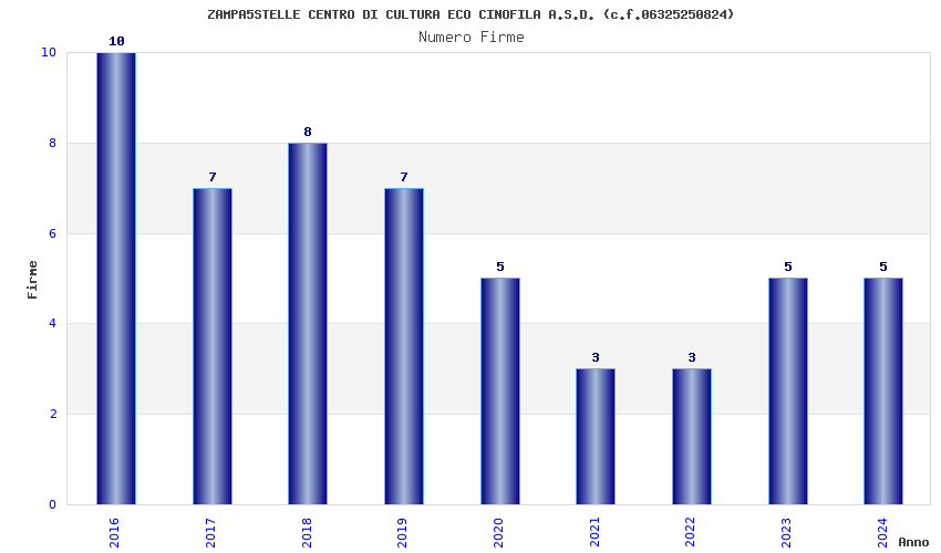 | Anno | Firme | Importi | Media | Naz. | Reg. | Prov. | Comu. |