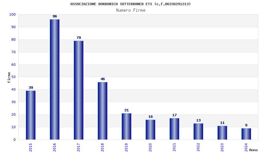 | Anno | Firme | Importi | Media | Naz. | Reg. | Prov. | Comu. |