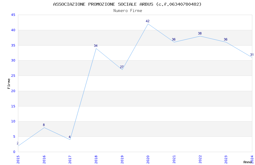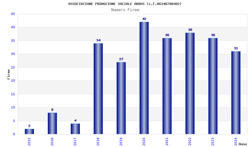 | 2020 | 42 | 1.773,95 | 42,24 | 26.377 | 1.634 | 520 | 277 |