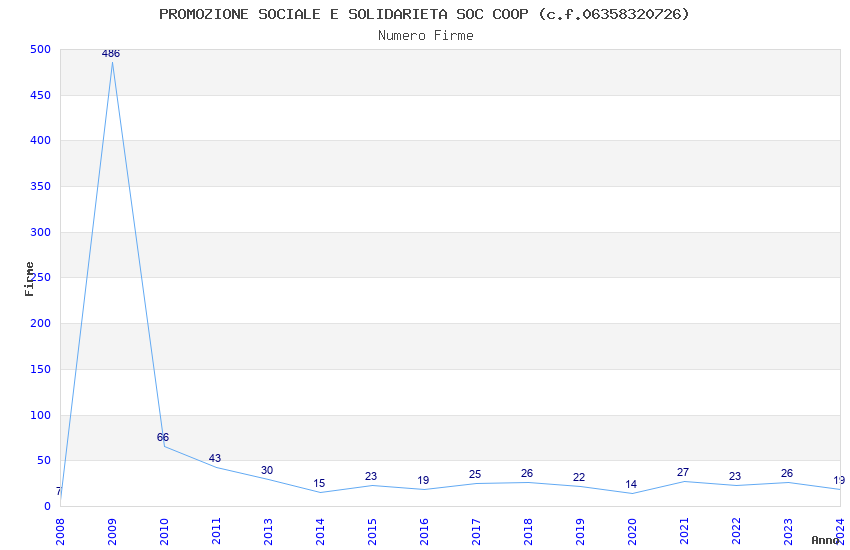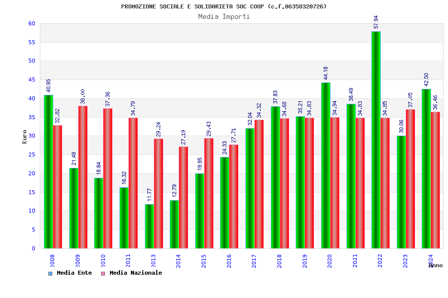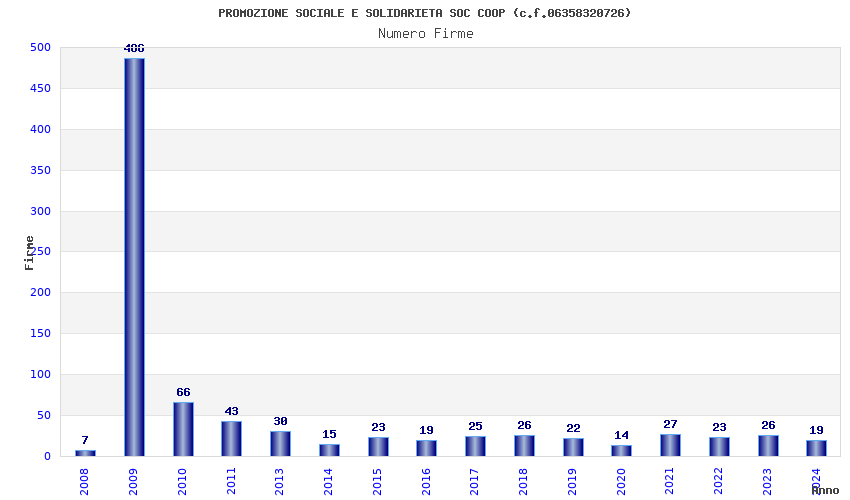 | Anno | Firme | Importi | Media | Naz. | Reg. | Prov. | Comu. |