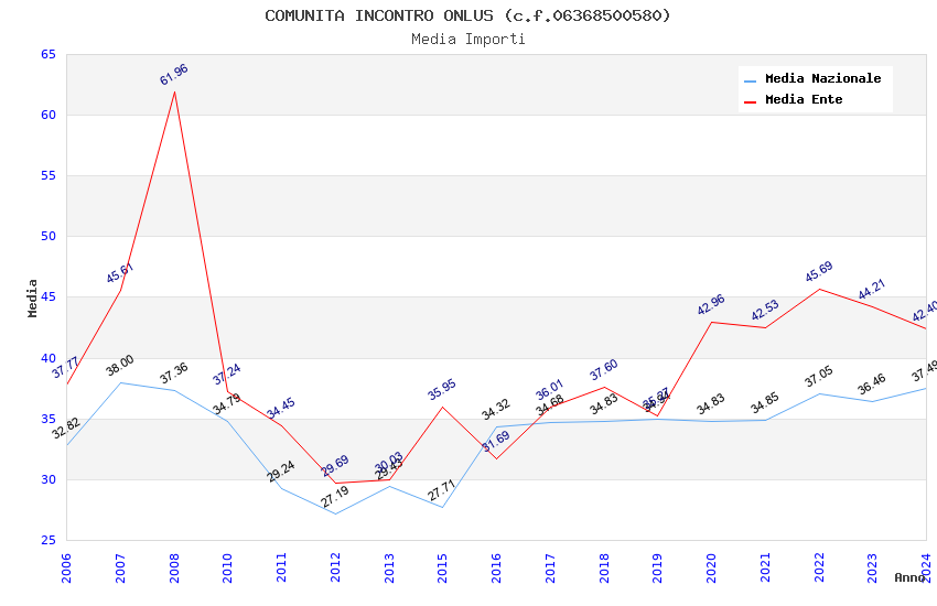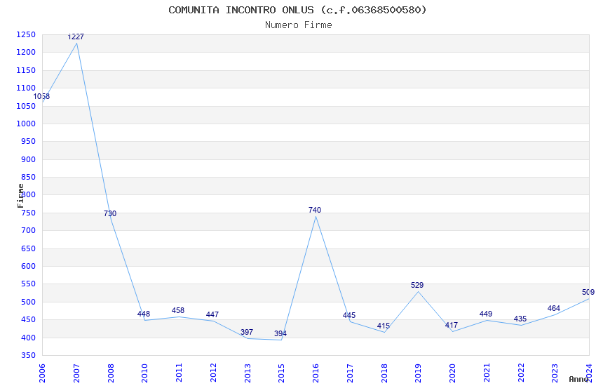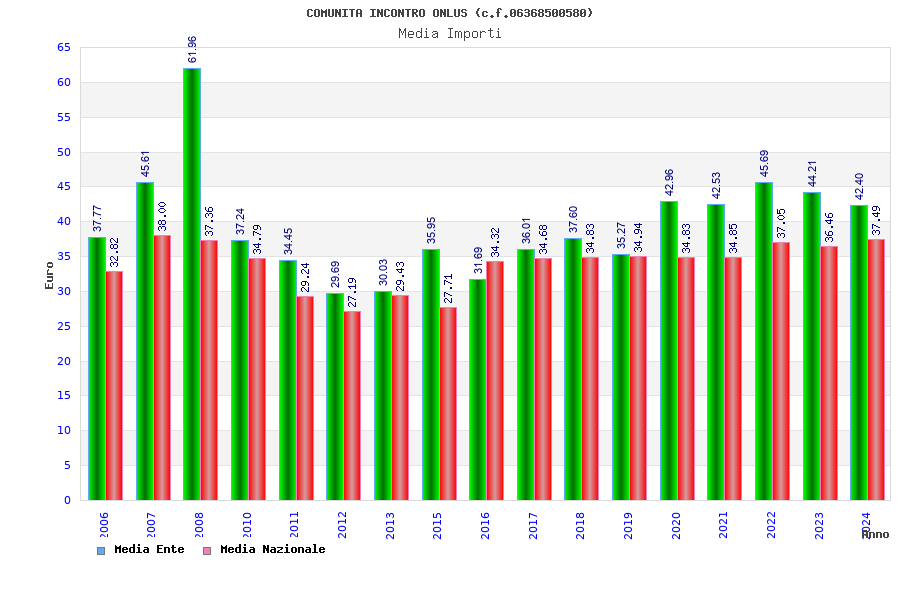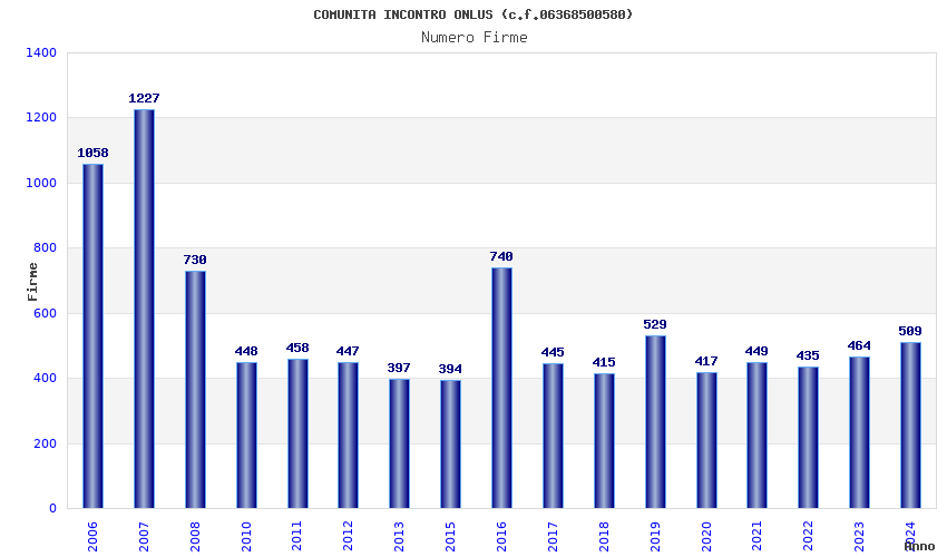 | Anno | Firme | Importi | Media | Naz. | Reg. | Prov. | Comu. |