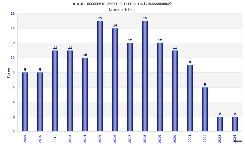 | 2018 | 15 | 871,93 | 58,13 | 37.091 | 7.871 | 2.424 | 6 |