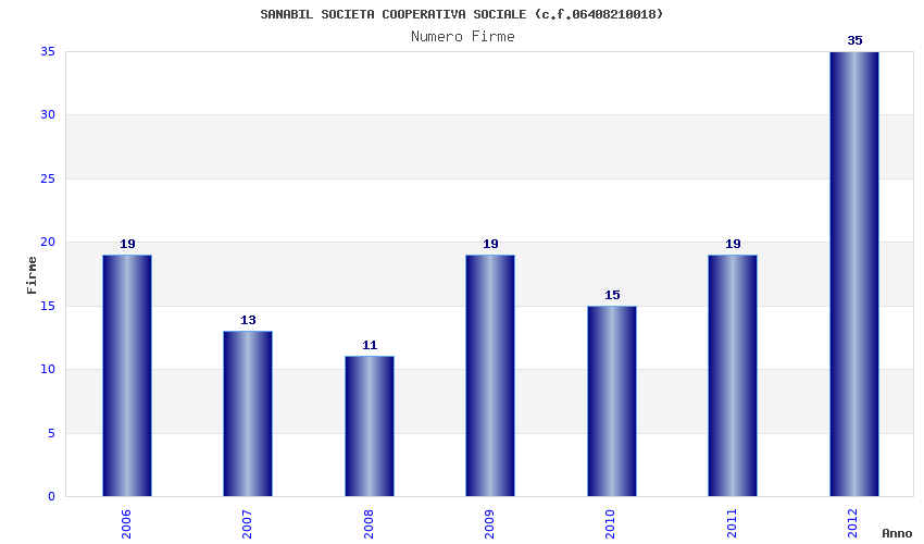 | Anno | Firme | Importi | Media | Naz. | Reg. | Prov. | Comu. |