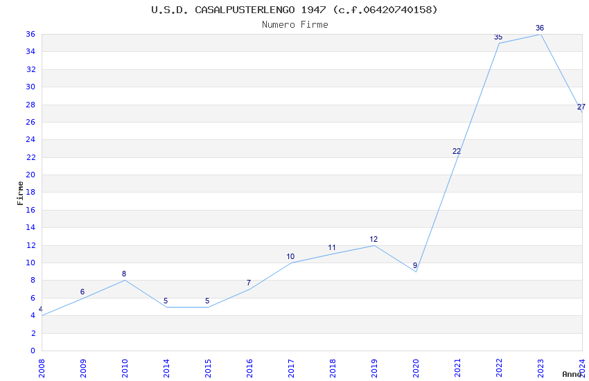 | 2023 | 36 | 1.321,07 | 36,70 | 31.074 | 6.328 | 149 | 9 |