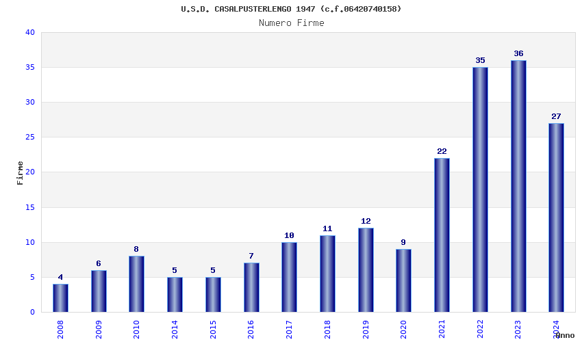 | 2022 | 35 | 1.336,48 | 38,19 | 29.772 | 6.098 | 145 | 10 |