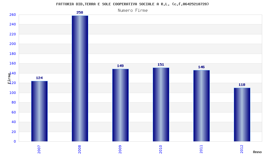 | Anno | Firme | Importi | Media | Naz. | Reg. | Prov. | Comu. |
