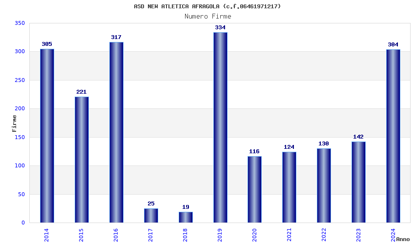 | Anno | Firme | Importi | Media | Naz. | Reg. | Prov. | Comu. |