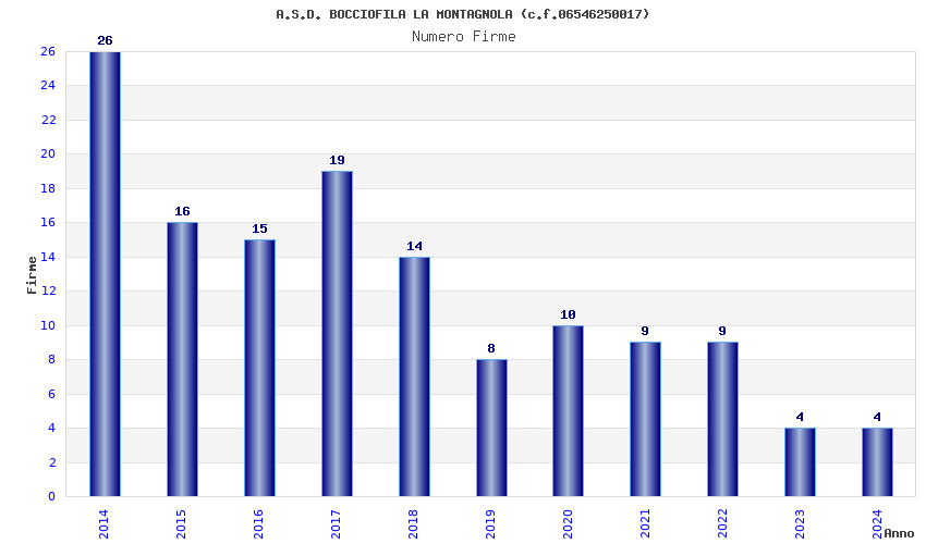 | Anno | Firme | Importi | Media | Naz. | Reg. | Prov. | Comu. |