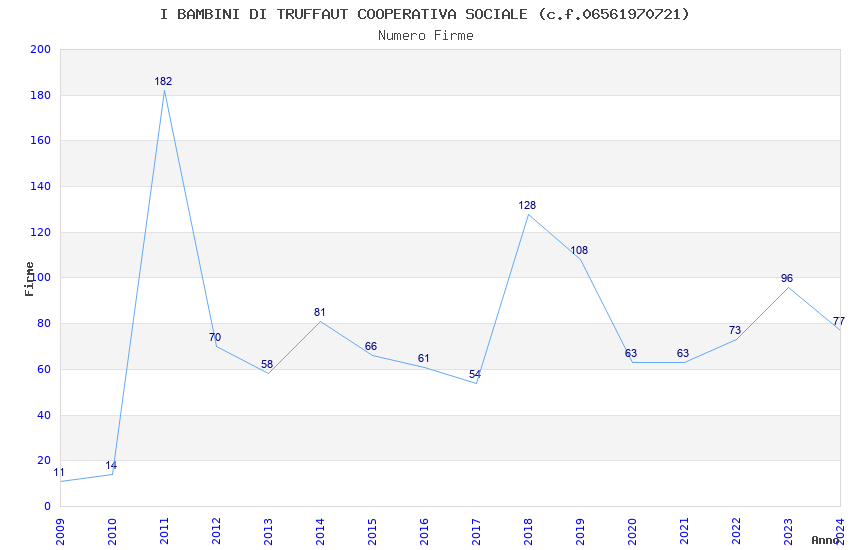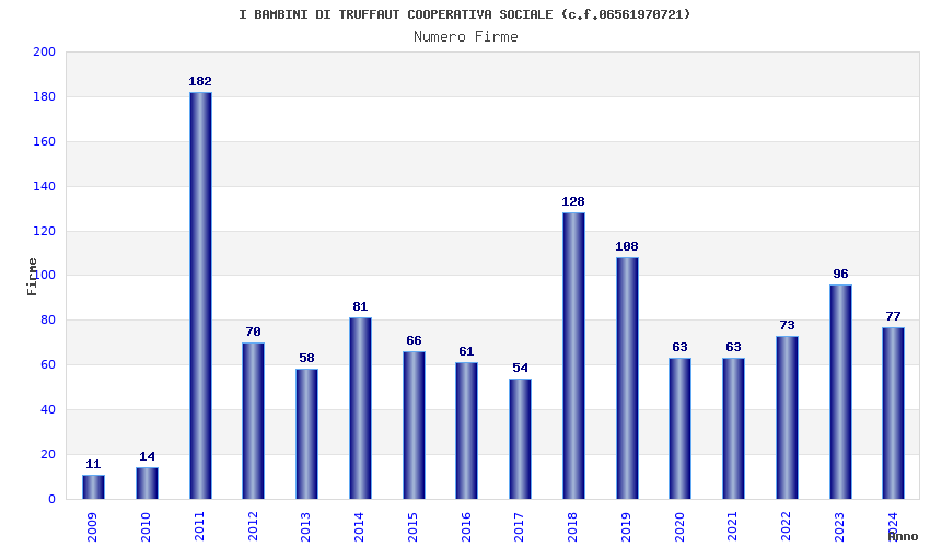 | 2011 | 182 | 3.705,25 | 20,36 | 9.890 | 452 | 168 | 2 |