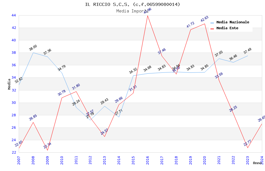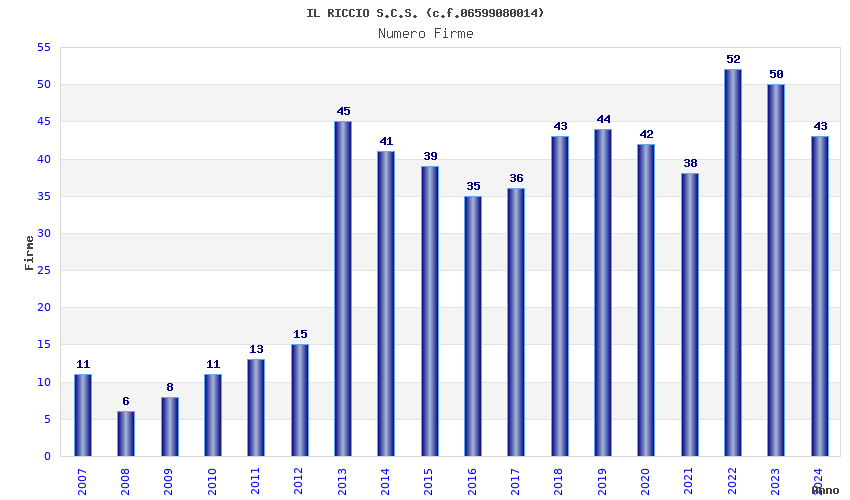 | Anno | Firme | Importi | Media | Naz. | Reg. | Prov. | Comu. |