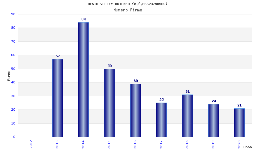 | Anno | Firme | Importi | Media | Naz. | Reg. | Prov. | Comu. |