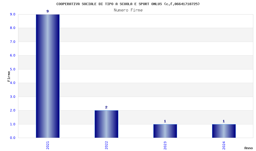 | Anno | Firme | Importi | Media | Naz. | Reg. | Prov. | Comu. |
