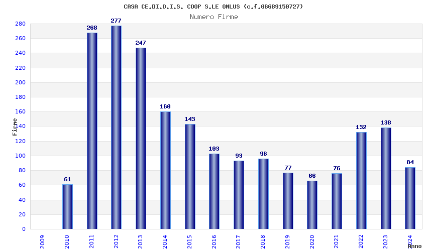 | Anno | Firme | Importi | Media | Naz. | Reg. | Prov. | Comu. |