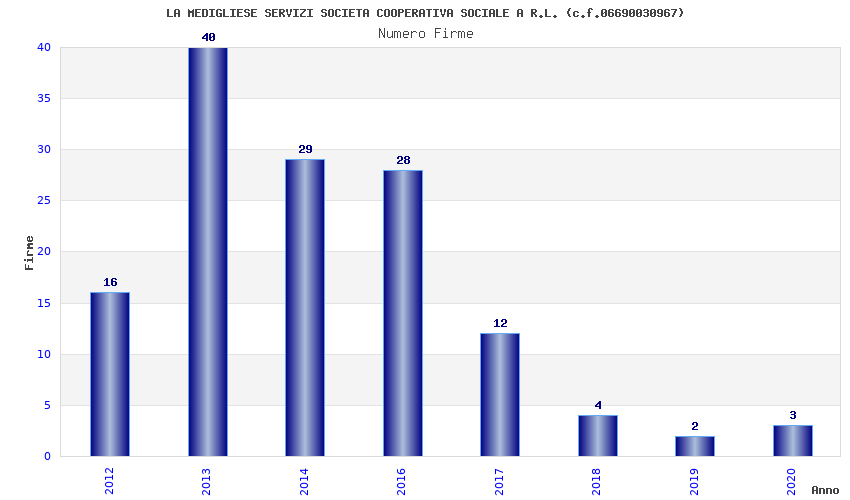 | Anno | Firme | Importi | Media | Naz. | Reg. | Prov. | Comu. |