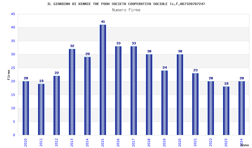 | Anno | Firme | Importi | Media | Naz. | Reg. | Prov. | Comu. |