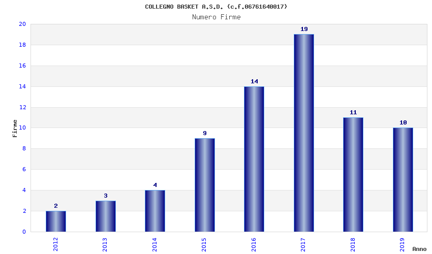 | Anno | Firme | Importi | Media | Naz. | Reg. | Prov. | Comu. |