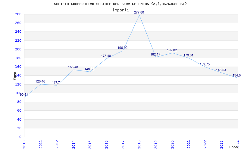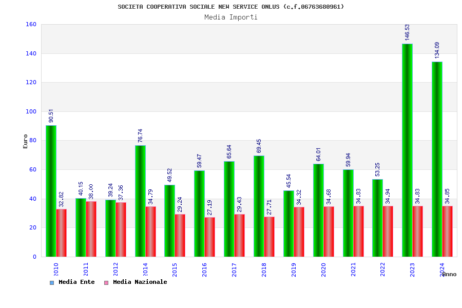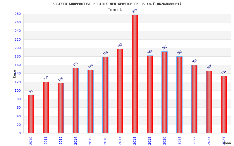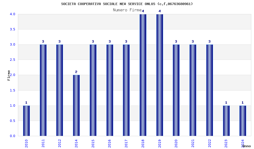 | Anno | Firme | Importi | Media | Naz. | Reg. | Prov. | Comu. |