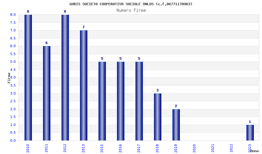 | Anno | Firme | Importi | Media | Naz. | Reg. | Prov. | Comu. |