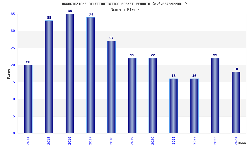 | Anno | Firme | Importi | Media | Naz. | Reg. | Prov. | Comu. |