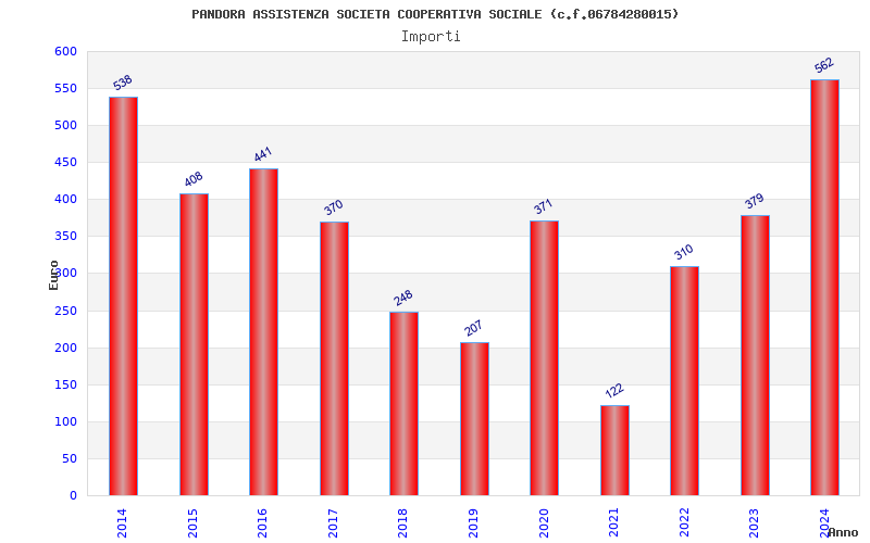 | Anno | Firme | Importi | Media | Naz. | Reg. | Prov. | Comu. |