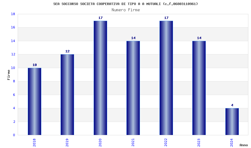 | Anno | Firme | Importi | Media | Naz. | Reg. | Prov. | Comu. |