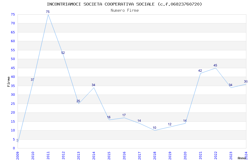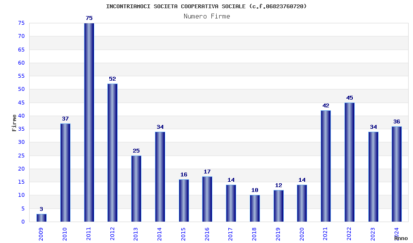 | Anno | Firme | Importi | Media | Naz. | Reg. | Prov. | Comu. |
