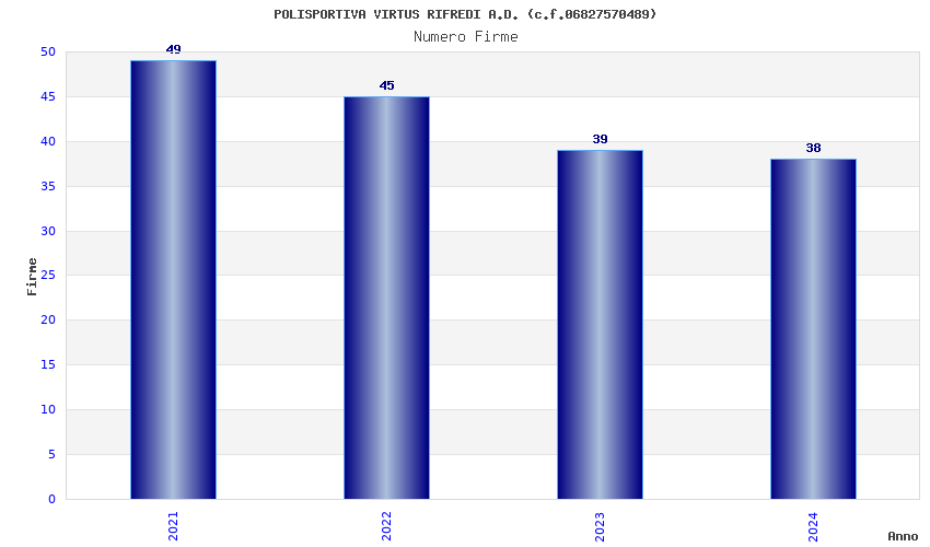 | Anno | Firme | Importi | Media | Naz. | Reg. | Prov. | Comu. |