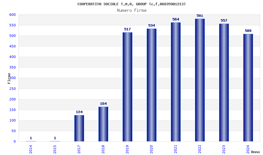 | Anno | Firme | Importi | Media | Naz. | Reg. | Prov. | Comu. |