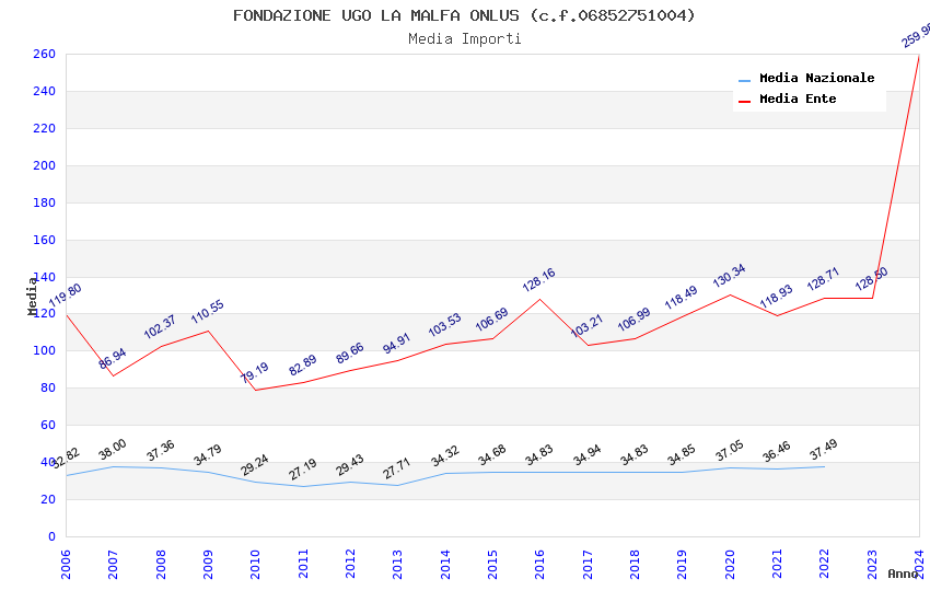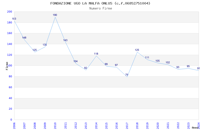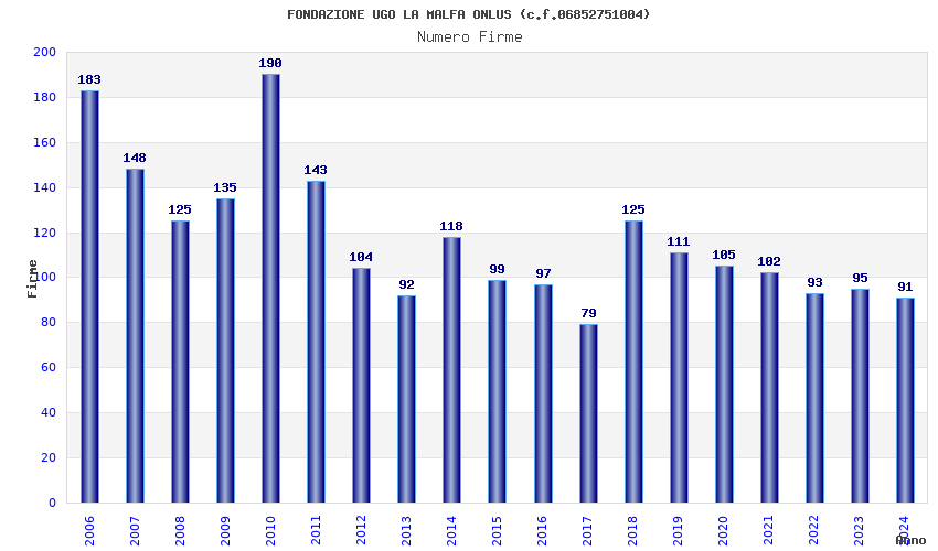| Anno | Firme | Importi | Media | Naz. | Reg. | Prov. | Comu. |