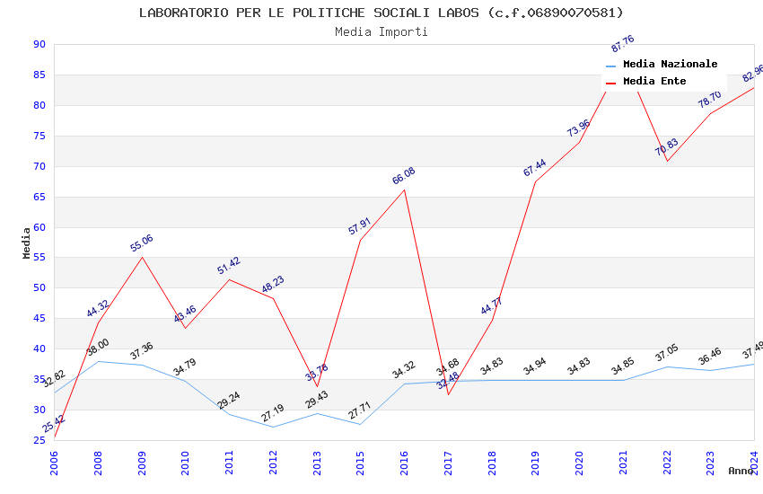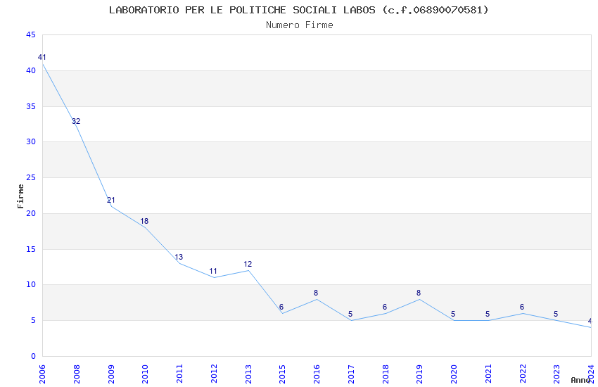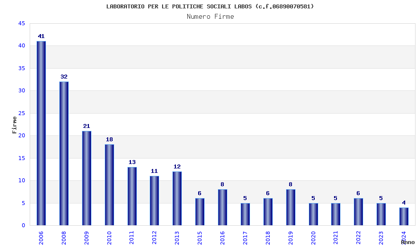 | Anno | Firme | Importi | Media | Naz. | Reg. | Prov. | Comu. |