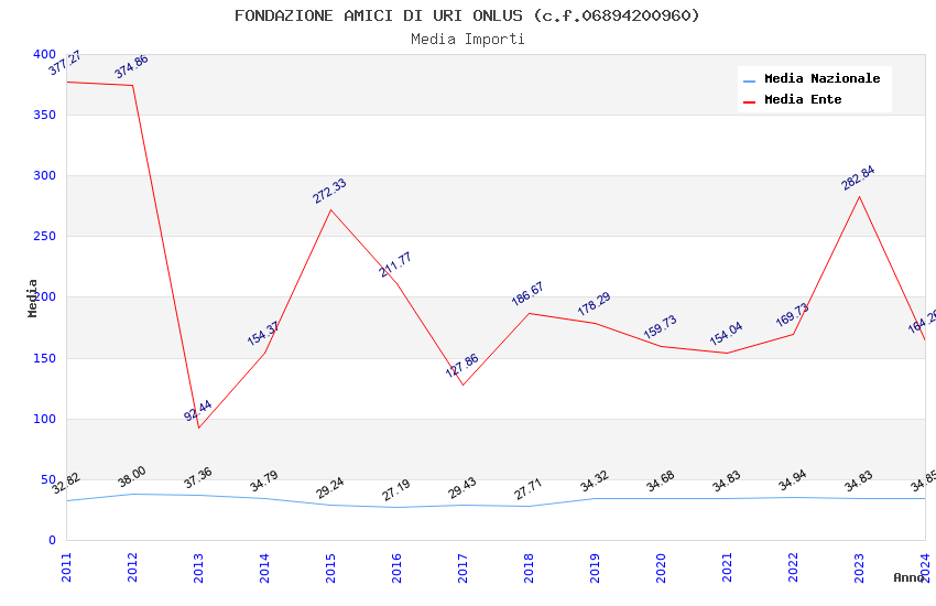 | Anno | Firme | Importi | Media | Naz. | Reg. | Prov. | Comu. |