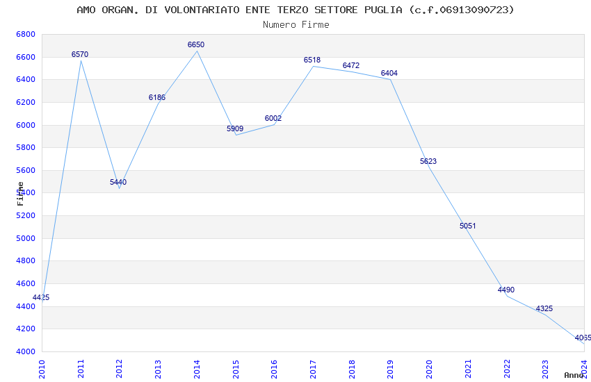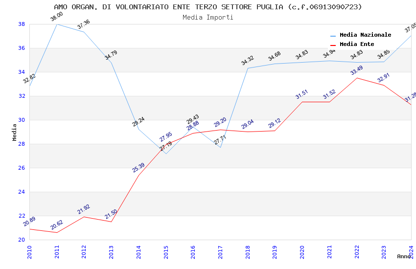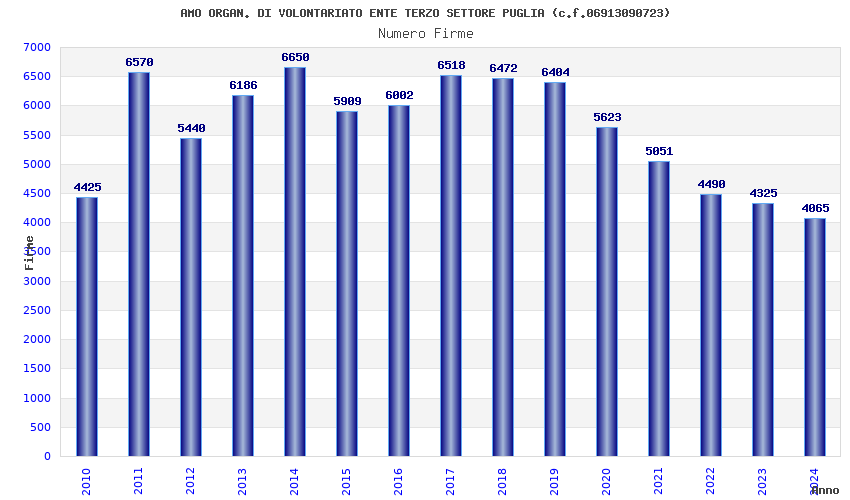 | Anno | Firme | Importi | Media | Naz. | Reg. | Prov. | Comu. |