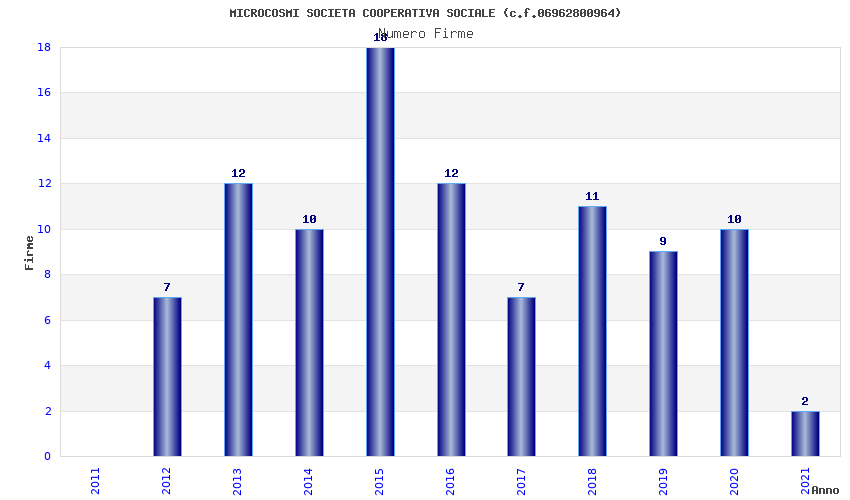 | Anno | Firme | Importi | Media | Naz. | Reg. | Prov. | Comu. |