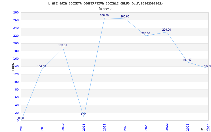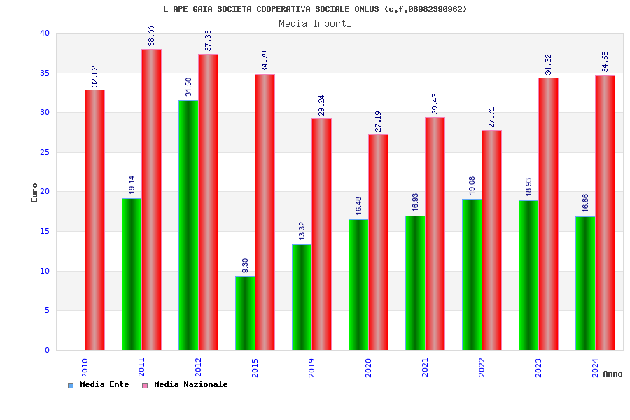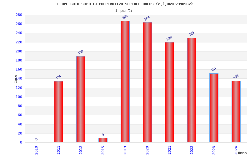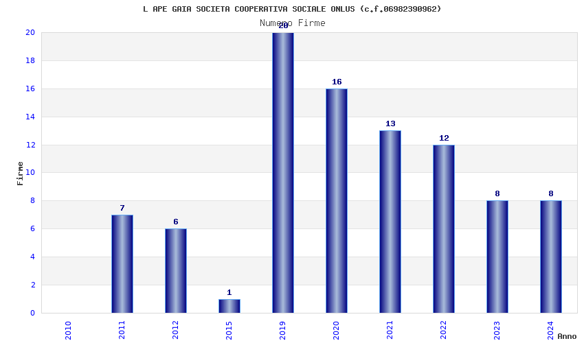 | Anno | Firme | Importi | Media | Naz. | Reg. | Prov. | Comu. |